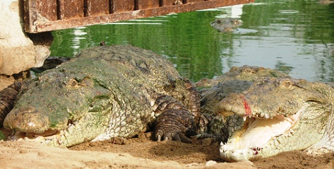 (2) Adjacent to the shrine is the second attraction in the form of a crocodile pond with a hundred plus docile crocodiles lying lazily there.